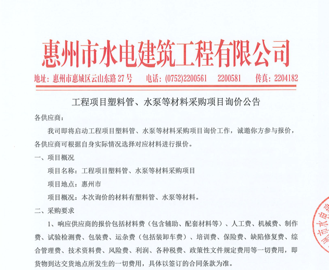惠州市水電建筑工程有限公司勞務供應商庫擴庫評審結(jié)果公示……